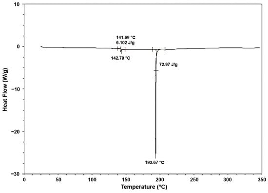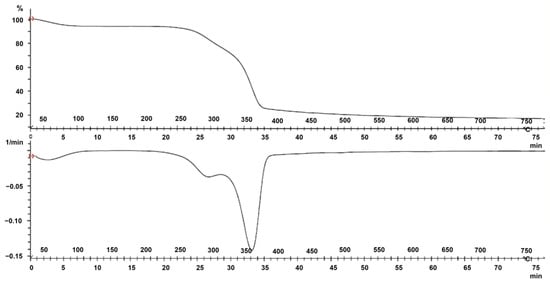 The thermal properties of fique fibers were characterized using thermal gravimetric analysis (TGA) and differential scanning calorimetry (DSC). TGA was performed using a METTLER TOLEDO TGA/SDTA851 Thermal Analyzer (Columbus, OH, USA) over a temperature range of 50 to 800 °C at a heating rate of 10 °C/min in an inert N2 atmosphere with a flow rate of 40 cm3/min. DSC was performed using a TA Instruments DSCQ2000 Thermal Analyzer (TA Instruments, New Castle, DE, USA) over a temperature range of 0 to 350 °C at a heating rate of 10 °C/min in an inert N2 atmosphere with a 50 cm3/min flow rate.