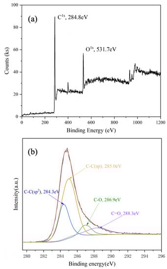 XPS spectra of graphdiyne film: (a) survey scan, (b) narrow scan for element C.
