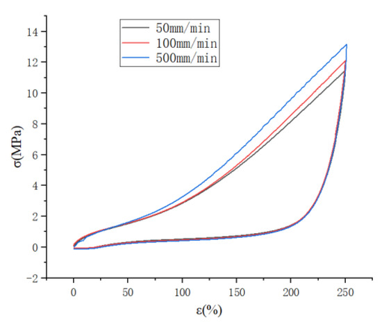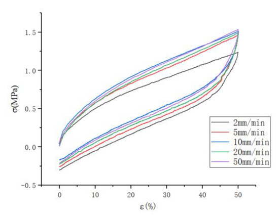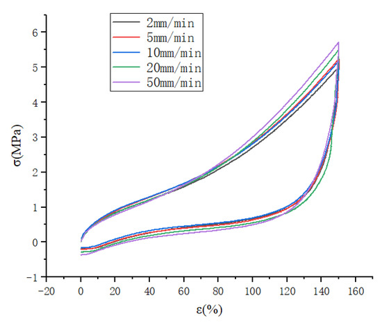 Tensile curves at different tensile speeds with strain levels of 50%.
