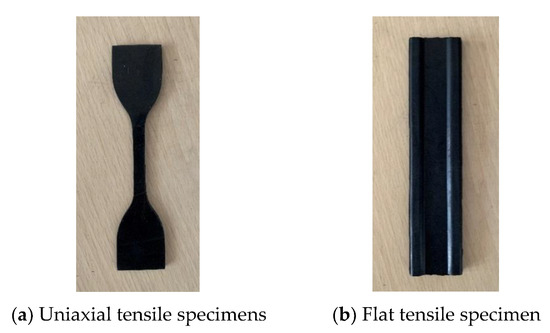 The most important feature of natural rubber that distinguishes it from synthetic rubber is the crystallization phenomenon, which includes strain-induced crystallization and low-temperature-induced crystallization, and a large number of studies have shown that the fatigue life of natural rubber is substantially enhanced under non-relaxation loading (i.e., the ratio of minimum loading to maximum loading > 0) [22]. The crystallization phenomenon is considered to be the reason for the high fatigue resistance of rubber materials. Rubber materials exhibit different properties at different temperatures, for example, below the glass transition temperature, rubber is in a glassy state, and above that temperature, it is in a highly elastic state, indicating that rubber materials are highly temperature-sensitive materials. Most rubber products work in environments ranging from ambient temperature to 100 °C. Federico et al. [23] showed that microdefects in rubber materials at ambient temperature mainly originate from cavities generated by the separation of agglomerates from the rubber matrix, while at high temperature, they mainly originate from the fracture of agglomerates. Schieppati et al. [24] studied the fatigue properties of NBR, and found that the higher the temperature, the faster the crack growth rate, while the crack growth rate changed slightly at 25 °C~40 °C. Liu Xiangnan et al. [25] conducted uniaxial tensile fatigue tests on dumbbell-shaped natural rubber specimens, and found that the fatigue life was dispersive under the same conditions, so three probability distribution models, namely normal distribution, lognormal distribution and Weibull distribution were used to quantify the life distribution. Demiral et al. [26] made a finite element simulation of a bonded joint and used the user-defined UMAT subroutine of ABAQUS/Standard to link the static damage and fatigue damage models of the bonded zone to express the response of the bonded layer. Fang Yunzhou et al. [27] adopted the Arrhenius model, introduced the high temperature aging factor into the fatigue model with the engineering strain peak as the damage parameter, and accurately predicted the fatigue life of rubber bushing using finite element analysis. Weng et al. [28] subjected natural rubber to a high temperature (85 °C) and cyclic loading at the same time. SEM images confirmed the appearance of nano-scale cracks and cavities under the combined action of high temperature and cyclic loading. Unlike the fatigue loading conditions at room temperature, the cracks were caused by the nucleation effect of dissolved steam and gas in the low-molecular-weight domain of NR. The appearance of a low-molecular-weight domain is caused by thermal degradation products. Zhang et al. [29], based on the uniaxial tensile fatigue data of dumbbell-shaped rubber specimens, used the least square method to fit the functional relationship between the strain energy and temperature, established the high-temperature life-prediction formula and achieved good results. Luo et al. [30] studied the static tearing behavior of carbon-black-filled rubber at different temperatures and measured the critical tearing energy. The results showed that the critical tearing energy decreased exponentially with the increase of temperature.
