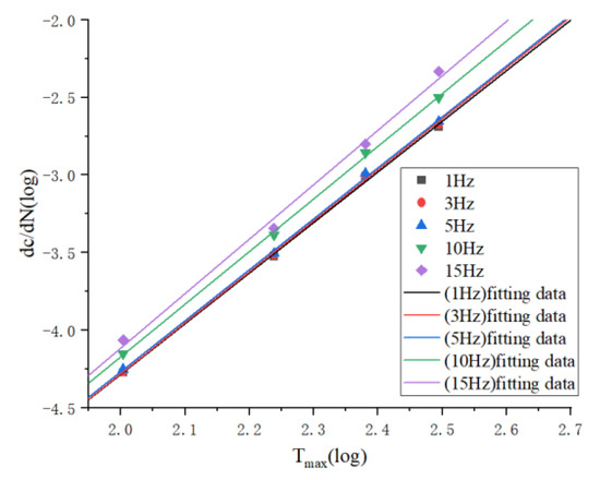 Therefore, this equation becomes a straight line in logarithmic coordinates, and the influence of various factors on the crack extension of the rubber material can be shown more intuitively by the slope. Moreover, by establishing a fatigue life model to evaluate the crack expansion law, the data distortion caused by one experiment can be avoided.