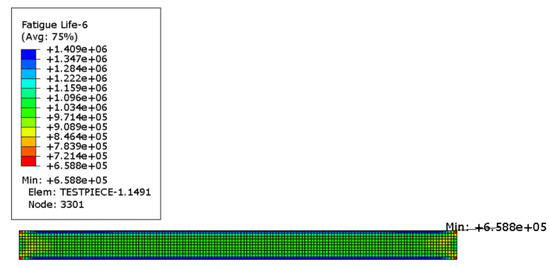 Nephogram of fatigue life of specimen under thermal-mechanical coupling.