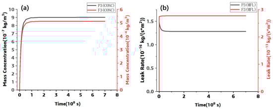 The simulated results at P3 and F3: (a) Concentration, (b) Leak Rate.
