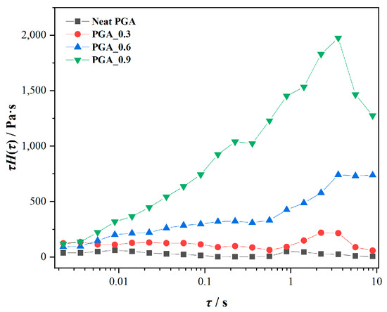 In addition, the weighted relaxation spectra for the neat PGA and modified PGA samples are presented in Figure 8.