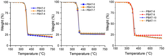 Thermogravimetric data of PBAT compositions.