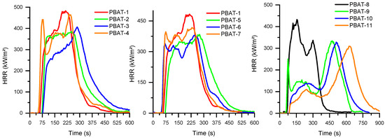 HRR as a function of time for PBAT compositions.