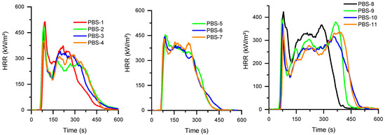 HRR as a function of time for PBS compositions.