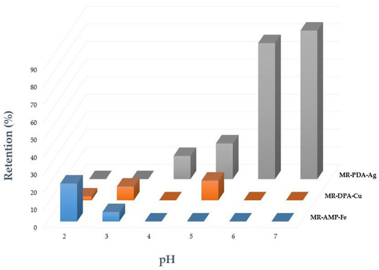| MR-PDA | Fe3+ Ag+ Pb2+ | 93 91 80 | 10 150 150 |
