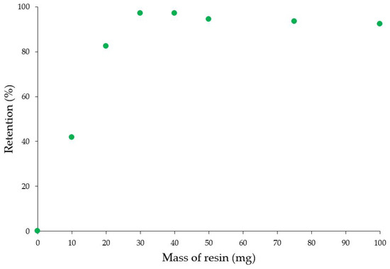| Resin | Cation | Maximum Retention % | Adsorbent Dose (mg) for Maximum Retention |