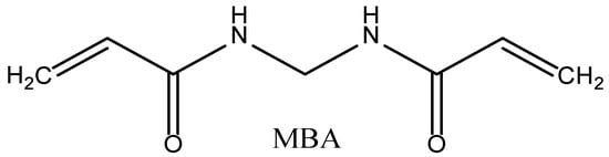 (4) N,N′-methylenebisacrylamide (MBA) used as a crosslinking agent, the left and right ends of which each contain a carbon–carbon double bond, in the synthesis process can make the polymer form a three-dimensional network structure, which improves the thermal stability of the polymer (as shown in the Figure 5).