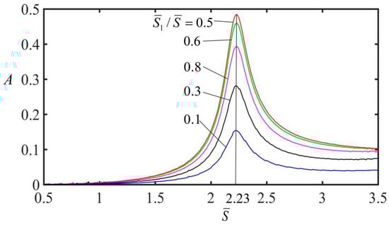As shown in Figure 5, the amplitude at the free end of the spring oscillator varies with the electrothermal drive period when the electrothermal drive time rate is 0.5, 0.6, 0.3, 0.8 and 0.1 respectively. The other parameters are: , , , , , and . As the electrothermal drive period increases, the vibration amplitude of the spring oscillator first increases and then decreases, reaching a maximum amplitude, when the natural period is 2.23. It should be noted here that the optimal electrothermal drive period does not change with the electrothermal drive time rate.