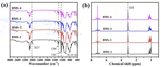(a) The FTIR spectra of BMSs. (b) The 1H NMR spectra of BMSs.