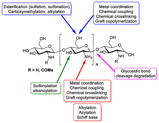 Design of chitin and chitosan structure, chemistry and functional groups that are able to be modified [19].