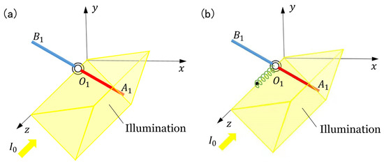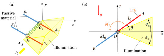 where is the moment of inertia of about axis, is the moment of inertia of about axis, is the moment of inertia of about axis, and is the moment of inertia of about axis. It is worth noting that the length depends on the light-driven contraction strain. Then, the length of the and the length of the can be expressed as