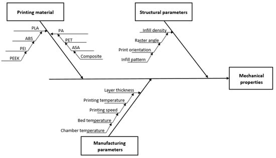 The selection of printing speed, infill density, layer thickness, and infill pattern was made according to the importance of their influence on the mechanical properties of FFF parts [24]. Nozzle and bed temperature parameters were selected based on limited studies and investigation of these parameters in the literature [47].