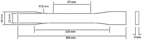 Laboratory tests were performed using the Shimadzu universal tensile strength testing machine (AG-IC 100kN); loading speed of the deformation corresponded to 1 mm/min at room temperature. The tensile test specimen dimensions according to ASTM D638-03 Type I are given in Figure 5.