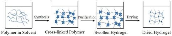Cross-linking is the creation of a link that connects the polymeric chains, leading to a hydrogel with a stable structure. The use of cross-linking may alter the physical properties of the polymer depending on the degree of cross-linking. The SAP becomes elastic at low cross-linking rates but rigid at high cross-linking rates. Cross-linking decreases the resulting SAP’s viscosity and increases its glass transition temperature, toughness, and strength [33].