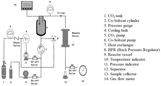 A supercritical fluid is a compound that is formed above critical pressure and temperature and is a green solvent that is inexpensive, safe, non-toxic, and environmentally friendly [69]. CO2, as a solvent in supercritical fluids, has an easy-to-control critical value, is convenient to use, and is characterized by a much lower critical temperature than other commonly used solvents. This fluid exhibits both gas and liquid properties, such as low viscosity, high diffusion coefficient, and good dissolution properties [70]. Villegas et al. studied the morphology and size-distribution properties of starch granules [71]. The results were recorded before and after contact with supercritical CO2. They also studied the solubility and volume expansion properties of the starch samples in supercritical CO2. Analysis of the SEM images revealed that the average diameter of the treated starch granules was higher than the average diameter of untreated starch granules when the samples were treated with supercritical CO2. This resulted in swelling of the starch granules. This may be due to the absorption of CO2 by starch. However, the extent of swelling realized in this case was negligible compared to the extent of swelling realized following other modification methods. The authors pointed out that the introduction of different functional groups exerted varying degrees of effects on the physicochemical properties of modified starch. Moreover, the supercritical fluid-modification approach can be combined with physical, chemical, and biological methods to obtain starch samples with the target properties. Figure 5 shows the schematic diagram of the supercritical CO2 unit. Table 1 summarizes the physical modification methods for the various starch sources that have been reported above.