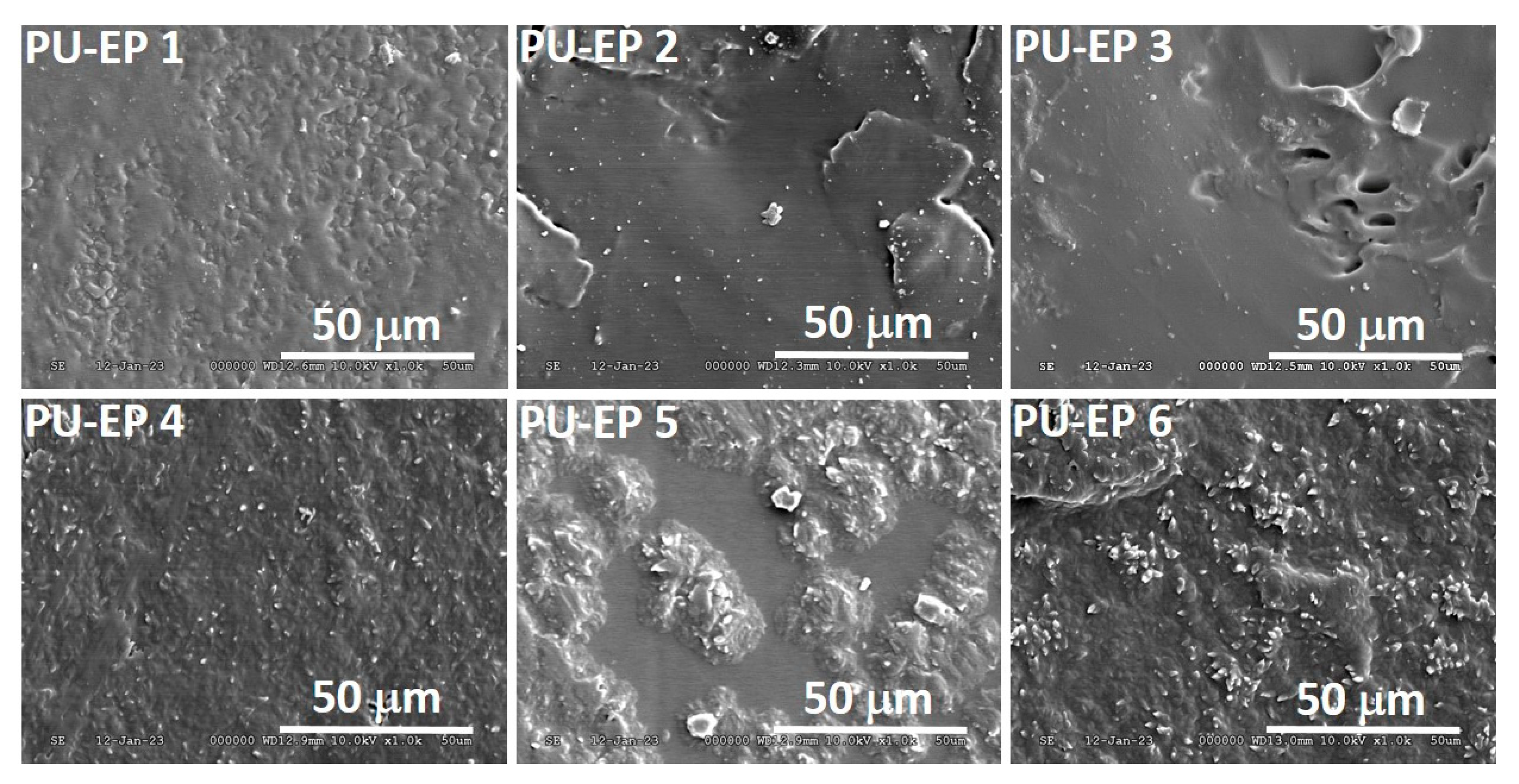 | PU-EP 6 | 26.8 ± 3.5 | 648.1 ± 65 | 6.8 ± 0.6 |