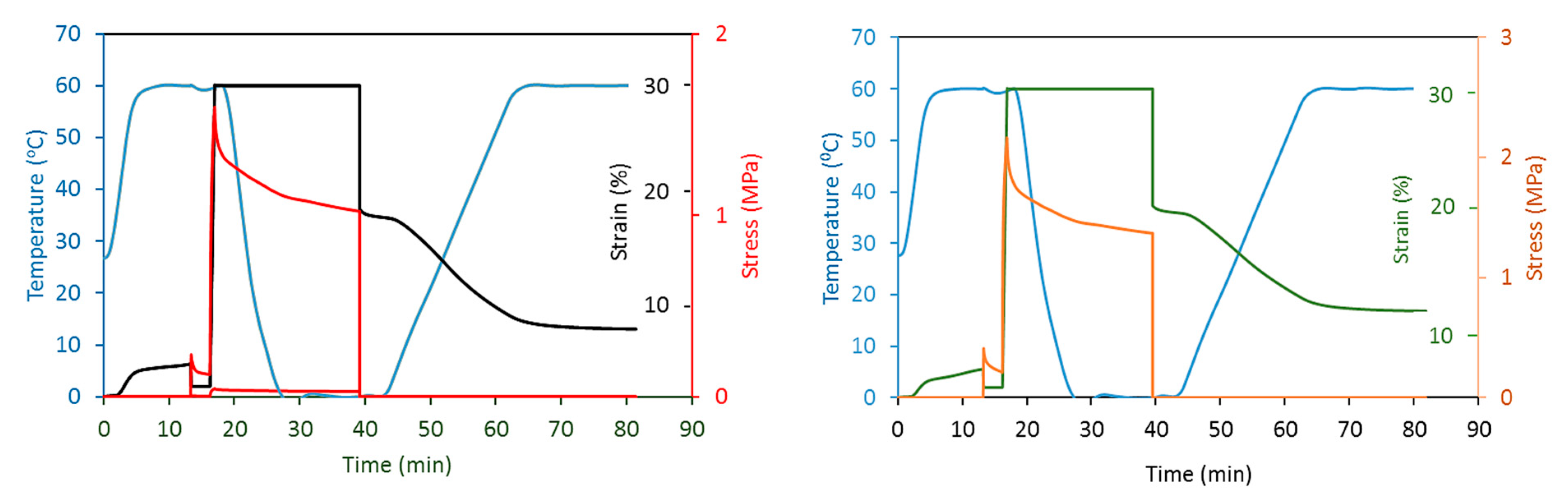 - Chung, T.; Romo-Uribe, A.; Mather, P.T. Two-Way Reversible Shape Memory in a Semicrystalline Network. Macromolecules 2008, 41, 184–192. [Google Scholar] [CrossRef]