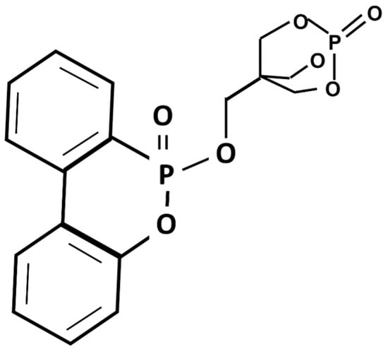 - A DOPO derivative phosphorus (P) flame-retardant, i.e., 6H-dibenz [c, e] [1,2] oxaphosphorin,6-[(1-oxido-2,6,7-trioxa-1-phosphabicyclo [2.2.2] oct-4-yl) methoxy]-, 6-oxide (DOPO-DP) and melamine (Mel) (Figure 8):