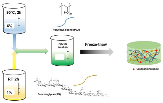 Illustration of the procedure for preparing the PVA/SG hydrogel.