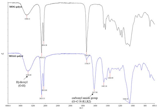 FTIR spectra of MOG-polyol and MOAG-polyol.