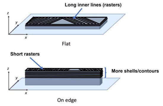 Build orientations examined (flat and on-edge).