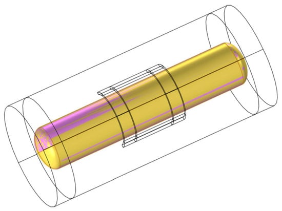 To generate a current, a closed circuit must be formed in the mold and CFRP tube. The current density Jt (A/m2) is shown in Equation (4), where is the conductivity tensor, D is the electric displacement vector (C/m2), v is the velocity (m/s), is the electromagnetic induction contribution, which is almost negligible compared to the source current, and is the Lorentz contribution.