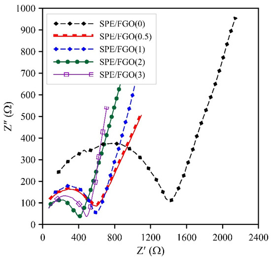 Figure 9. Nyquist plots of SPEs with Different Weight Percentages of FGO at room temperature.