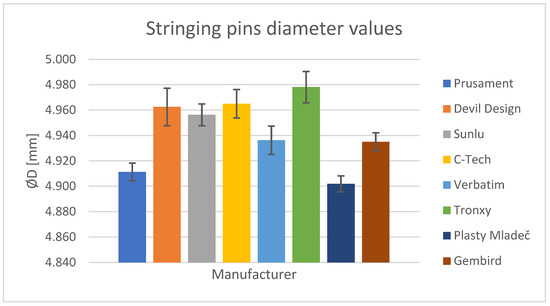 In the initial phase of analyzing the dimensional accuracy, the objective was to determine the average diameter of the pins used for stringing. Given the substantial sample size of 16 items, it was possible to accurately estimate the overall printing accuracy of the manufacturer (Figure 9) based on this dataset.