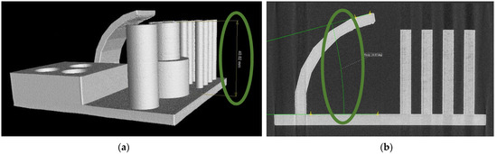 Dimensions check on CT. (a) Pin height (Plasty Mladeč); (b) overhang angle measurement (Gembird).