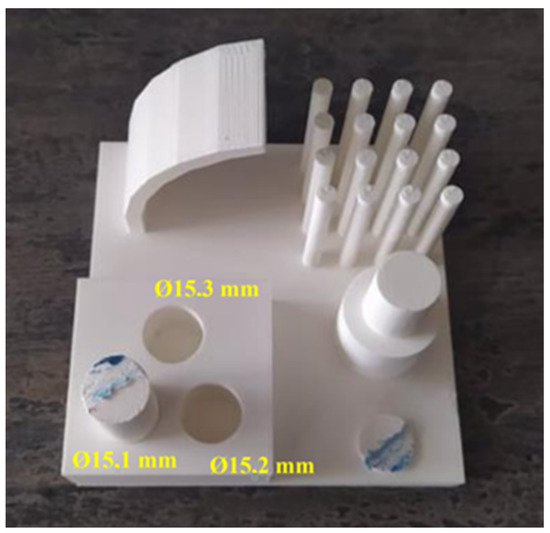 The evaluation has revealed several intriguing findings. Firstly, the dimensional accuracy of the pins and the mechanical properties, influenced by the print orientation, directly contradict the hypotheses presented in the research. Syrlybayev et al. [42] posit that all deviations in external dimensions are in the positive direction, indicating an increase in the actual value. However, in our experiment, all deviations were in the negative direction. Additionally, a correlation has been observed, indicating that the dimensional accuracy of printouts improves while the printout shrinks as the diameter of the pins increases (5 mm pins differ by 1.14% from the nominal size; 15 mm pins differ by 0.55%; 25 mm pins differ by 0.46%). The dimensional analysis of holes further confirms that as the hole diameter increases, the deviation from the nominal value also increases, albeit insignificantly (Ø 15.1 mm exhibited a mean difference of 0.02% from the nominal value; Ø 15.2 mm had a difference of 0.16%; Ø 15.3 mm had a difference of 0.18%).