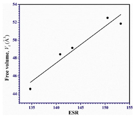 Correlation between hole volume and ESR for the investigated PVA-PVP blends (reproduced from ref. [82] with permission from Elsevier. DOI: 10.1016/j.polymertesting.2020.106681).