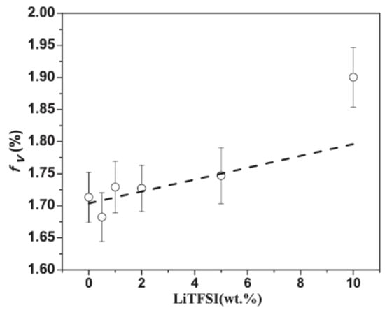Relative free volume versus the Li salt concentration (reproduced from ref. [106] with permission from Elsevier. DOI: 10.1016/j.ssi.2019.05.025).