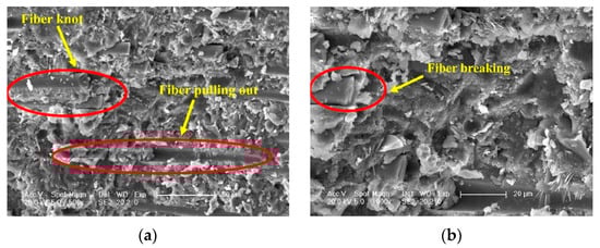 BFRPC microstructure [25]. (a) Fiber overlap and pulling out. (b) Fiber break.