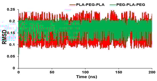 RMSD values of PLA-PEG-PLA and PEG-PLA-PEG.
