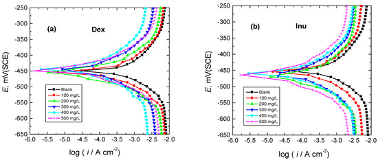 Toghan, A.; Fawzy, A. Unraveling the Adsorption Mechanism and Anti-Corrosion Functionality of Dextrin and Inulin as Eco-Friendly Biopolymers for the Corrosion of Reinforced Steel in 1.0 M HCl: A Thermodynamic and Kinetic Approach. Polymers 2023, 15, 3144. https://doi.org/10.3390/polym15143144