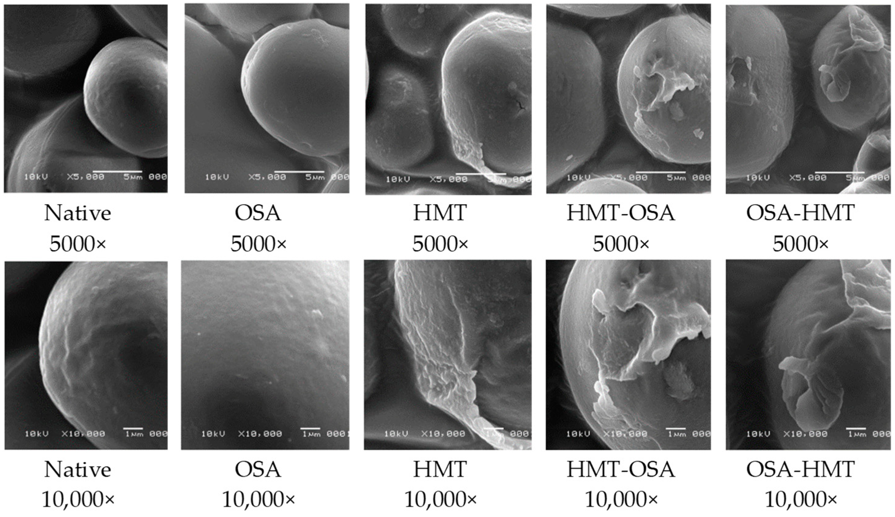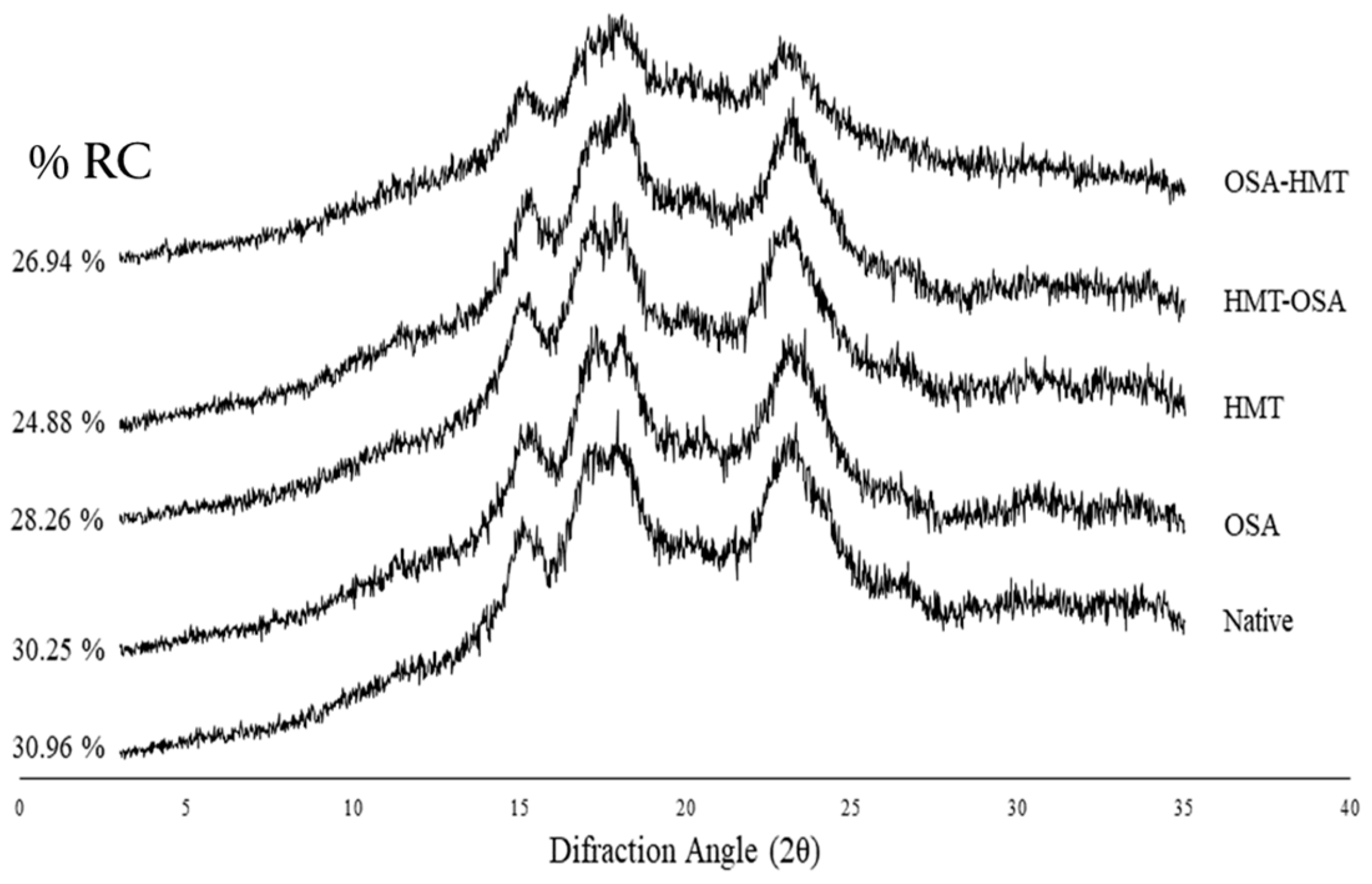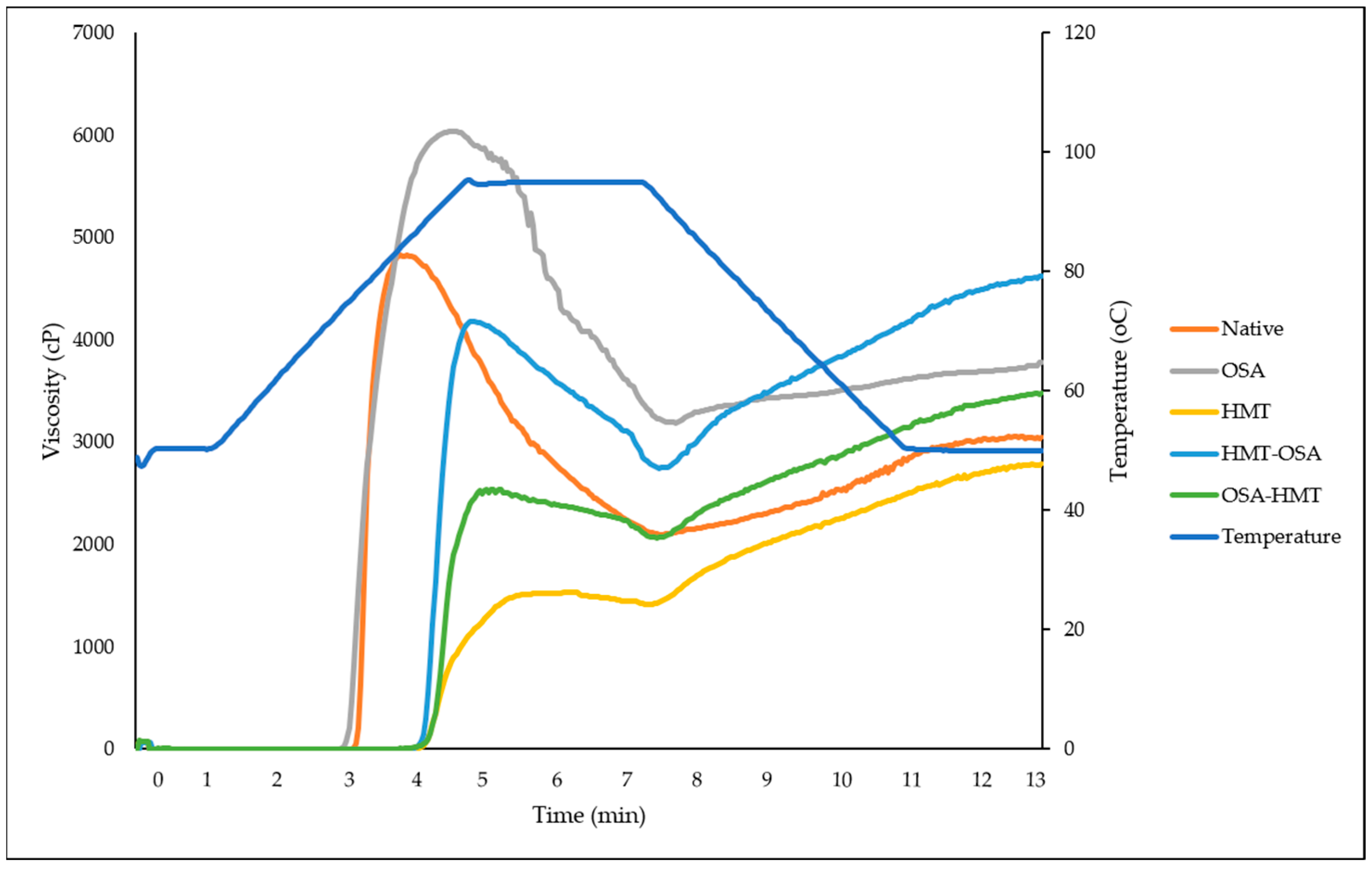 2.5. Dual Modification by HMT Followed by OSA (HMT-OSA)