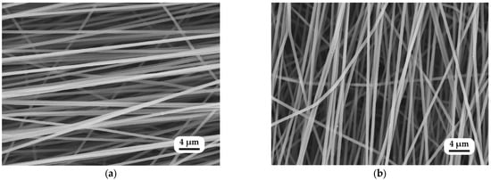 Several groups of researchers have found an increase in the tensile strength of nanofibers upon annealing. Young’s modulus increased from 4.7 GPa to 11.1 GPa due to the annealing of electrospun poly(L-lactic acid) (PLLA) at 75 °C for 24 h []. The annealing of CG (chitosan–gelatin) membranes in a vacuum oven at varying temperatures increased Young’s modulus and tensile strength by 1.3 and 1.1 times, respectively []. Another study [] used various temperatures to thermally treat a polymer solution of poly(L-lactic acid) doped with multiwalled carbon nanotubes. The selected temperatures were close to Tg and Tm, and the findings indicated that the annealing temperature must be close to the glass transition temperature. The annealing of PVA membranes at 85 °C and 140 °C increased the yield stress by 54%, while the average Young’s modulus increased by 24.5%, respectively [].