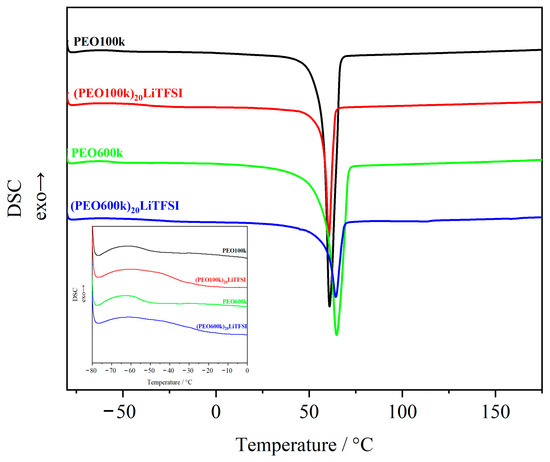 | (PEO100k)20LiTFSI | −40 °C | 61 °C | 57 J g−1 | 28% |