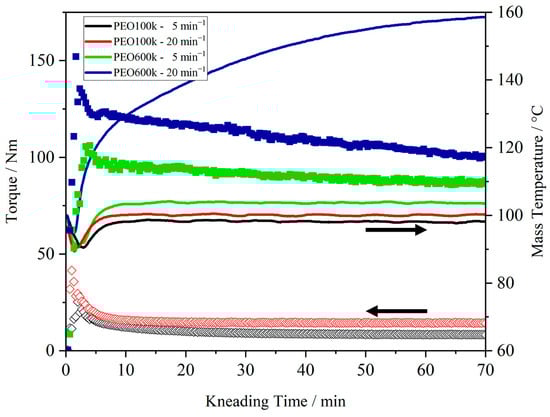 3.2.1. Effect of Process Parameters and Molecular Weight on the Thermal Kneading Behavior of PEO