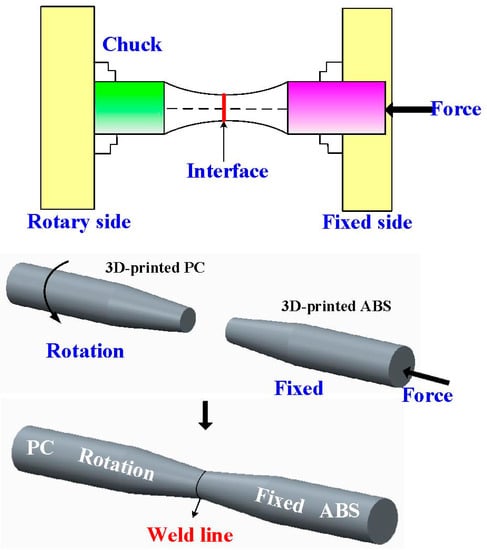 - Kuo, C.-C.; Chen, H.-W.; Xu, J.-Y.; Lee, C.-H.; Hunag, S.-H. Effects of Rotational Speed on Joint Characteristics of Green Joining Technique of Dissimilar Polymeric Rods Fabricated by Additive Manufacturing Technology. Polymers 2022, 14, 4822. [Google Scholar] [CrossRef]