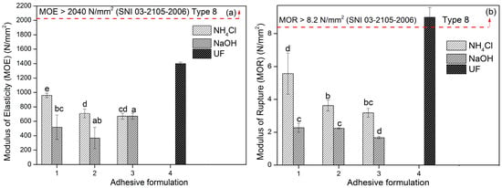 - Lubis, M.A.R.; Iswanto, A.H.; Hua, L.S.; Kristak, L.; Antov, P.; Putri, R.; Juliana, I.; Mardawati, E. Post-Modification of Ultra-Low Molar Ratio Urea-Formaldehyde Adhesive with Different Types and Levels of Organic Acid Hardener. IOP Conf. Ser. Earth Environ. Sci. 2022, 1115, 012037. [Google Scholar] [CrossRef]