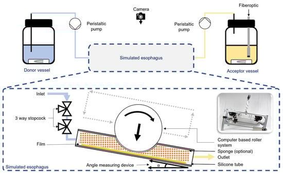 - Rosenbaum, C.M.; Brokmann, F.; Krause, J.; Weitschies, W. Establishment of a Dissolution Test System for the Biorelevant Characterization of Esophageal Applied Dosage Forms. J. Pharm. Sci. 2021, 111, 62–68. [Google Scholar] [CrossRef] [PubMed]