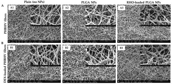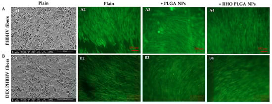 2.3. Production of DEX-PHBHV Electrospun Fiber Meshes with RHO-PLGA NPs