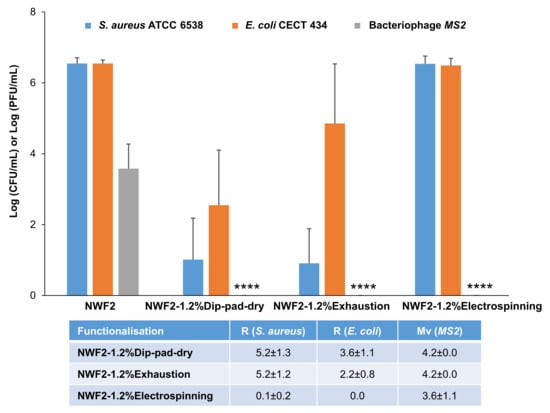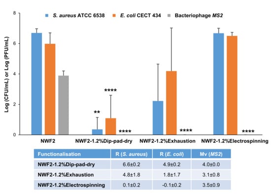 - ISO 18184; Textiles—Determination of Antiviral Activity of Textile Products. ISO: Geneva, Switzerland, 2014.