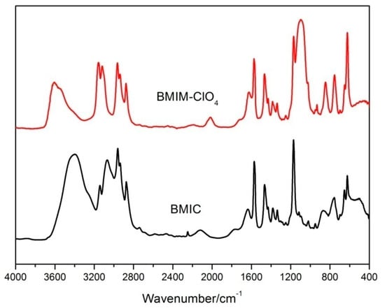 3.1. Identification of BMIC and BMIM-ClO4 Ionic Liquid