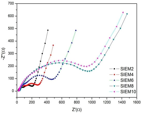| Sample | Ionic Conductivity (S/cm) | Ea (kJ/mol) | Rb (Ω) | Ri (Ω) |