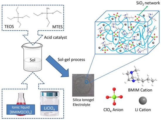 - Le Bideau, J.; Viau, L.; Vioux, A. Ionogels, ionic liquid based hybrid materials. Chem. Soc. Rev. 2011, 40, 907–925. [Google Scholar] [CrossRef]